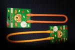 Aan dit mannetje zit een elastiek zodat deze opgehangen kan worden aan bijvoobeeld een kooi of bench. Natuurlijk kan deze ook opgehangen worden aan een trapleuning of deurpost...